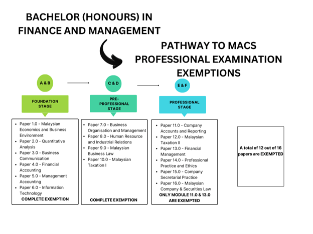 - Bachelor (Honours) in Finance and Management programme is accredited by MQA