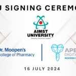 On 16 July 2024, AIMST University signed a Memorandum of Understanding (MOU) with APEX Digital Dental and Dr. Moopen’s College of Pharmacy. This significant event marks the beginning of a promising collaboration aimed at enhancing academic excellence and professional opportunities for our students and faculty.